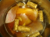 手豚の軟骨を煮るのに圧力鍋を使おうと思ってます。 レシピを見ると 高圧で 30分と書かれていました。 手持ちの鍋がは高圧なのか何なのかわかりません。 高級な圧力鍋ではなく、スーパーで4千円ほどで買ったものなので 高圧とかではないかもしれません。作り方 かすべは6等分に切り、熱湯をかけておきます。 鍋にA調味料と水を加え、沸騰寸前に1のかすべと生姜を入れアクを取り、落し蓋をし煮ます。 人参は茹でて梅型で抜き、3~4mm厚さに切ります。 器に盛り、3の人参、木の芽を添え仕上げます以前、「かすべの軟骨が苦手で食べにくい~」という話を聞きました。 その方にも なんとかして食べられるようにできないか?と考えたレシピです。 軟骨も丸ごと食べられるようにすれば良いのかな?と感じ 圧力鍋で調理したところ・・・。